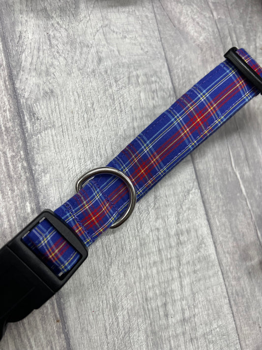Blue tartan handmade dog collar